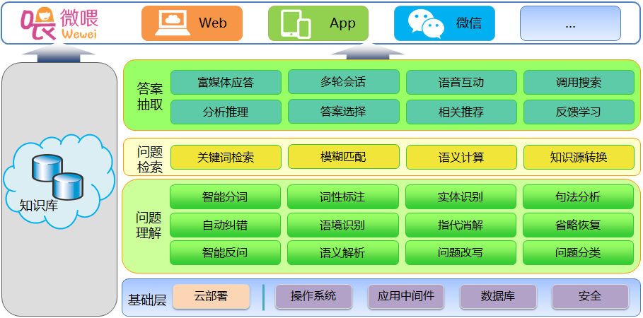 中聯科技微喂智能機器人通過知識庫、集成業務系統數據庫、集成企業級搜索三種答案途徑,為用戶提供全方位的解答,針對不同類型的問題,提供不同形式的的解答,滿足用戶的全面需求。