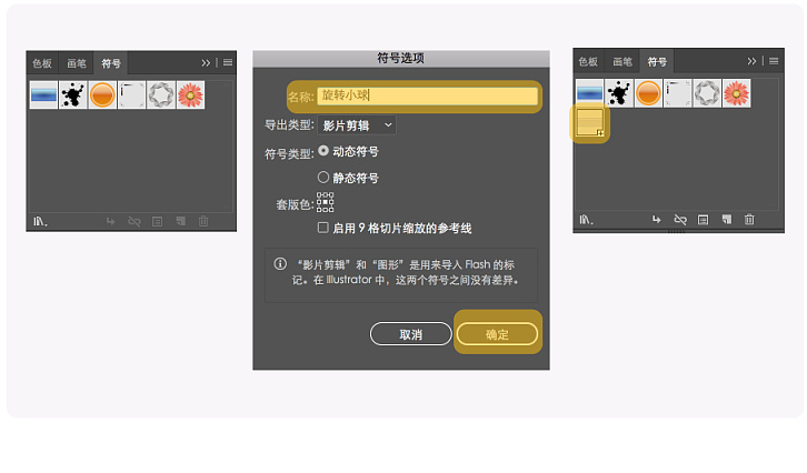 選中所有的形狀,吧圖接拖進(jìn)符號(hào)工具欄并點(diǎn)擊建立符號(hào)按鈕。