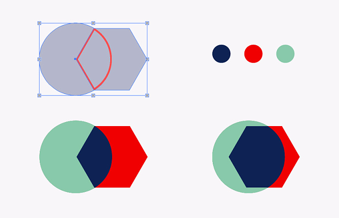 先畫兩個(gè)不同的形狀,把一部分給重疊一下建立一個(gè)色塊